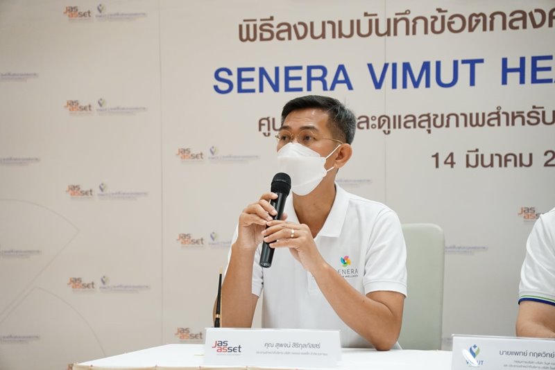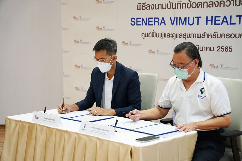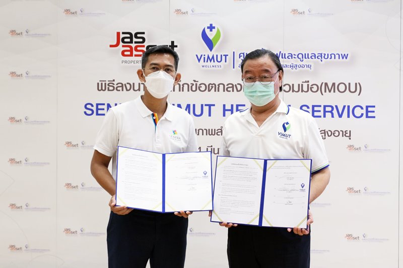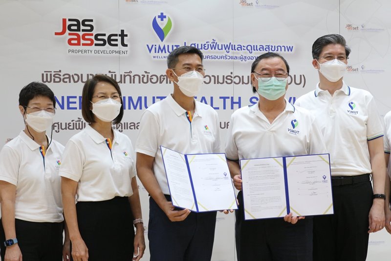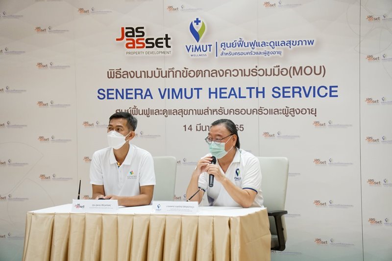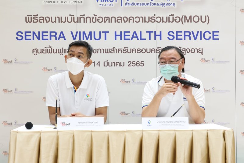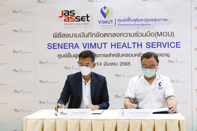 ภาพบรรยากาศพิธีลงนามบันทึกข้อตกลงความร่วมมือ (MOU) เพื่อดำเนินการจัดตั้ง SENERA ViMUT HEALTH SERVICE ศูนย์ฟื้นฟูและดูแลสุขภาพสำหรับครอบครัวและผู้สูงอายุ ในวันที่ 14 มีนาคม ที่ผ่านมา โดยภายในงาน ได้รับเกียรติจาก คุณสุพจน์ สิริกุลภัสสร์ ประธานเจ้าหน้าที่บริหาร บริษัท เจเอเอส แอสเซ็ท จำกัด (มหาชน) และ นายแพทย์ กฤตวิทย์ เลิศอุตสาหกูล กรรมการบริษัท วิมุต เวลเนส เซอร์วิส จำกัด และประธานเจ้าหน้าที่บริหาร บริษัท โรงพยาบาลวิมุต โฮลดิ้ง จำกัด ร่วมลงนามบันทึกข้อตกลงความร่วมมือ (MOU) ท่ามกลางสักขีพยาน ณ โรงพยาบาลวิมุต โดย SENERA ViMUT HEALTH SERVICE จะตั้งอยู่ภายในพื้นที่โครงการ SENERA SENIOR WELLNESS ถนนคู้บอน เพื่อตอบโจทย์การดูแลสุขภาพแบบองค์รวม ในด้านการป้องกัน ฟื้นฟูสุขภาพ และการให้การดูแลผู้สูงอายุที่มีภาวะพึ่งพิงและพึ่งพิงสูง ให้ได้รับการดูแลจากผู้เชี่ยวชาญ และทีมแพทย์มืออาชีพ